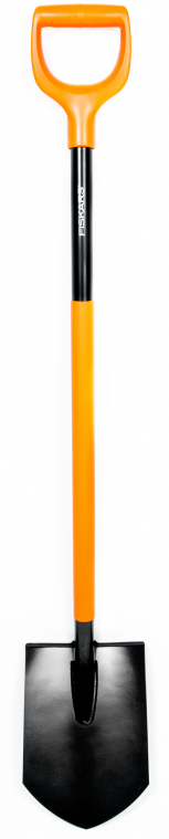 • Заточенное лезвие позволяет легко копать и перерезать корни. Хорошо подходит для перекопки каменистой, глинистой и твердой почвы.  Удлиненный черенок  длиной 122 см. Пластиковое покрытие черенка оранжевого цвета  защищает руки от холода. Пластиковая рукоятка в форме буквы D подойдет для руки любого размера, а также для работы в перчатках и без. Надежный и прочный стальной черенок круглого сечения. Сварное соединение между лезвиям и черенком обеспечивает надежность. Использование финской борсодержащей стали придает лопате дополнительную жесткость и обеспечивает легкое проникновение в почву.